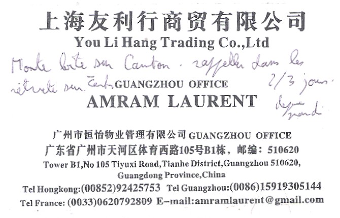 J'explique : le client en question est venu de Pékin pour assister à la foire-expo de Canton. Arrivé à l'accueil, il s'est fait jeté comme un malpropre. Raison : pas de passeport avec visa pour l'étranger ! Je suis passé voir ce qu'il en était, la seule solution pour lui (à moins de connaitre une personne sur place, cela va de soit), était d'être 'représentant' pour une entreprise étrangère. En gros, qu'un étranger ayant une carte d'acheteur le parraine...
