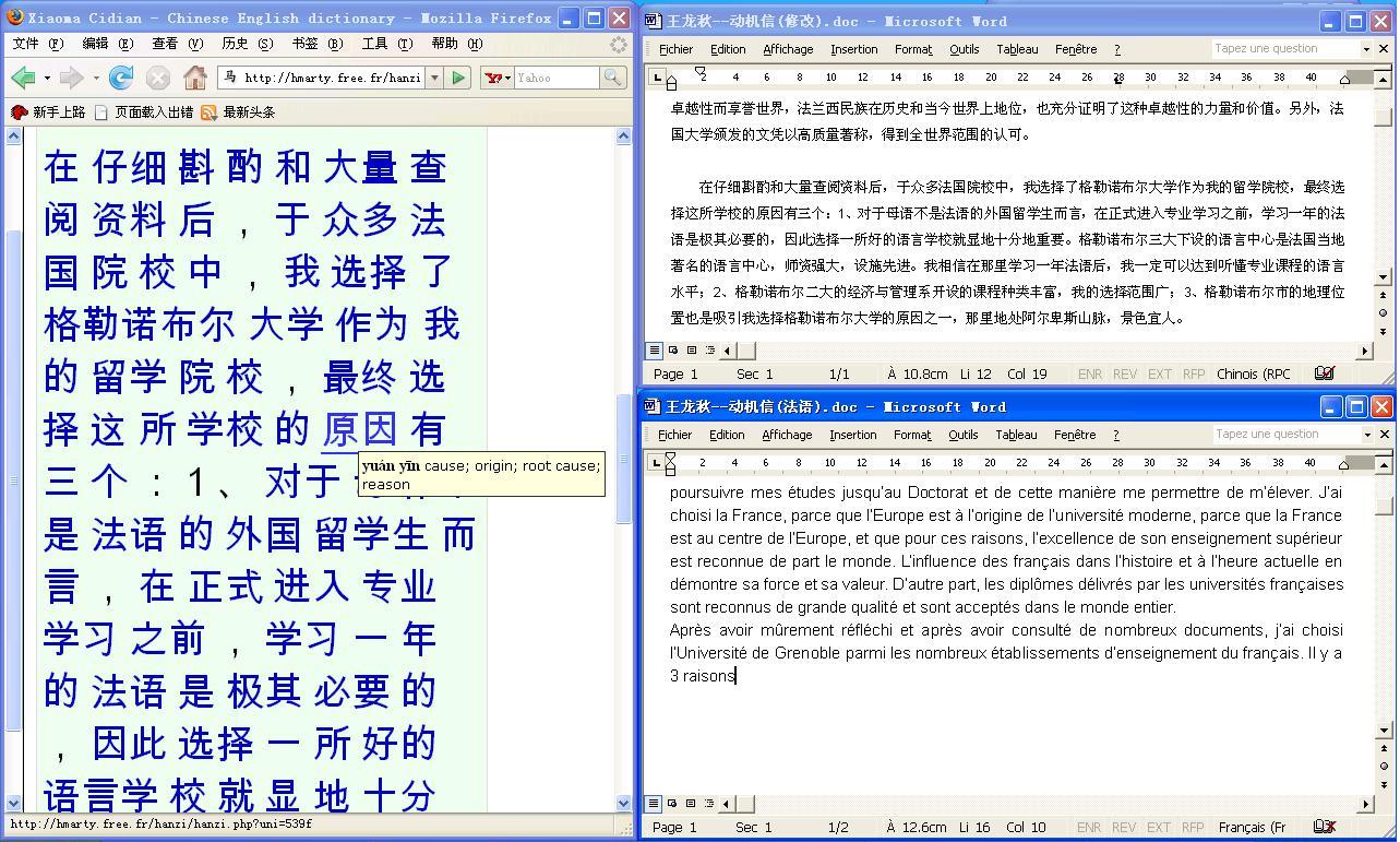 Passionné par la Chine, cela fait près de 6 ans que je suis dans le bain des langues étrangères. De part ma spécialité universitaire, les langues étrangères appliquées au monde de l'entreprise (anglais - chinois). De part mon année d'études, aux Etats-unis. De part ma femme et ma belle famille, chinoise. De part mon expérience professionnelle, en Chine. De part la centaine de documents traduits en chinois, notamment pour le compte d'agences pour les études en France. De part l'interprétariat effectué à l'occasion de la venue de collègues ou d'étudiants accompagnés en Chine. De part l'enseignement du français à des étudiants chinois et de l'enseignement du chinois (initiation) à des étudiants français. De part les lectures et les films, que je regarde le plus souvent en version originale anglophone.
